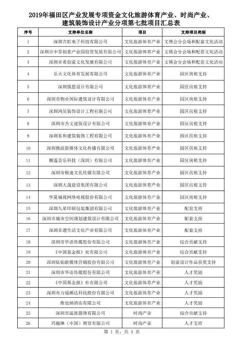 2020年3月24日,福田企服中心公布了2019年福田區(qū)產(chǎn)業(yè)發(fā)展專項資金文化旅游體育產(chǎn)業(yè)、時尚產(chǎn)業(yè)、建筑裝飾設(shè)計產(chǎn)業(yè)分項第七批支持企業(yè)及項目匯總表。其中,深圳市華南裝飾集團股份有限公司、深圳市華劍建設(shè)集團股份有限公司、深圳市廣安消防裝飾工程有限公司、深圳洲際建筑裝飾集團有限公司等建筑裝飾設(shè)計企業(yè)獲得該項資金支持,支持項目類別有:綜合貢獻支持、創(chuàng)意設(shè)計作品獲獎支持、人才支持、企業(yè)支持認定支持。
