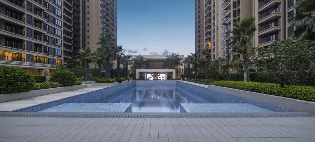夏日的陽光把人襯得很美,舒適躺椅、陽光泳池是住區布置的驚喜。這方水池足以讓居者在浸透在每一抹清涼之中,外部景觀區與泳池區用種植緩沖帶隔開,以茂密長青易打理的樹種形成私密空間,完美地保證泳池的私密性和觀賞性。