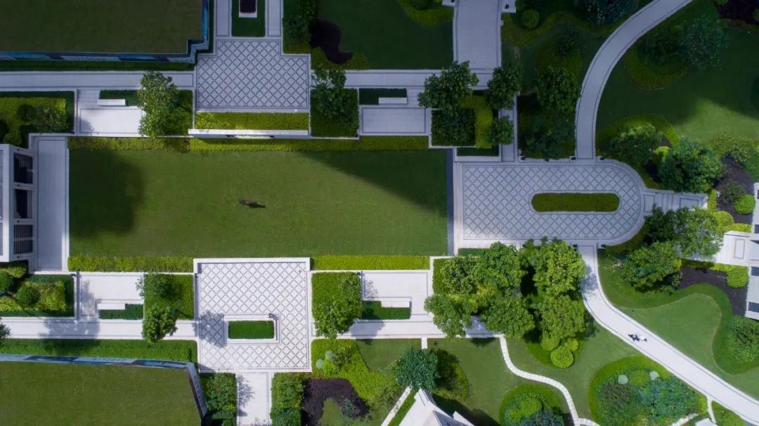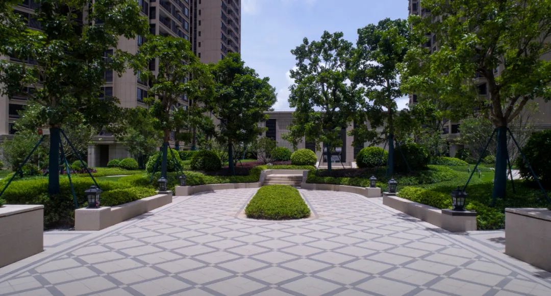 禮序而下,綠意徜徉在此,錯落的空間為游園增添了趣味,林蔭包裹著棲居的人,遠處草坪開闊,陽光透過樹葉輕輕灑下,樹影斑駁,微風拂過的是陣陣愜意。