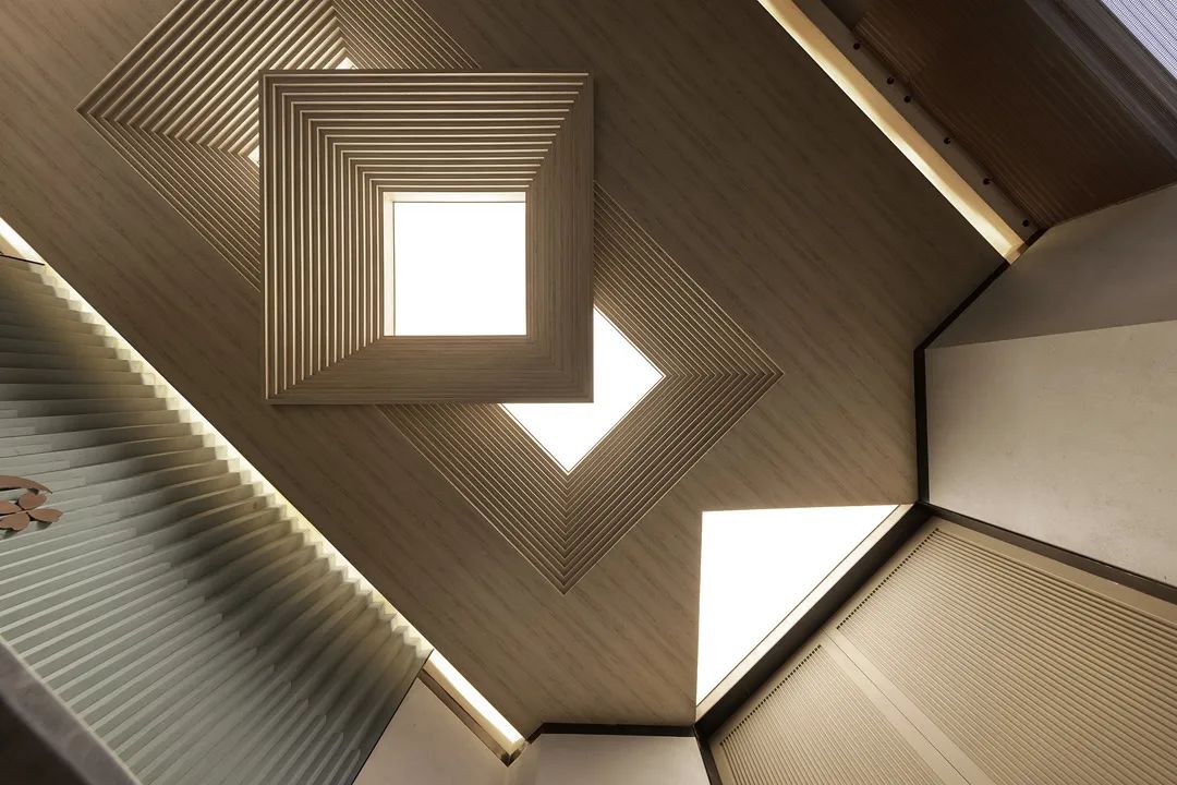 設計以光線作為設計,從序列感的形式出發,將宋氏建筑風格引入到空間內,無限接近人們的心靈空間,希望通過空間的沉浸體驗,賦予參觀者大隱隱于市的體驗感,原始與新生的沉靜體驗,不同文化融合后的新意風格,重新給予空間生命,讓其呈現超越之美。