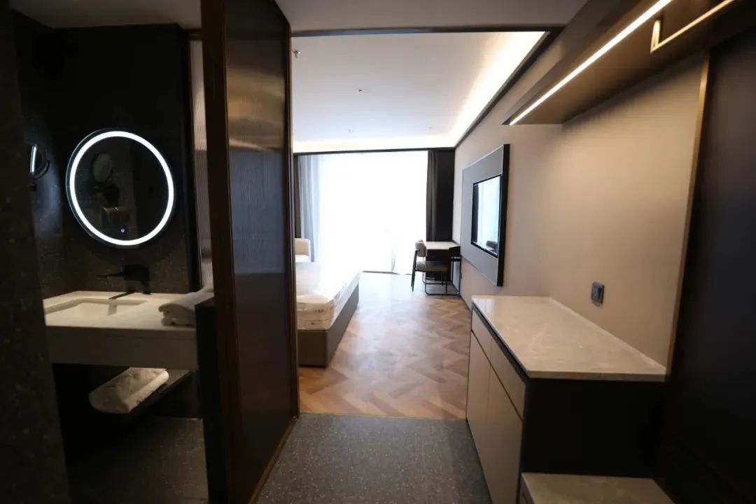 該項(xiàng)目由中建科工及同濟(jì)大學(xué)建筑設(shè)計研究院以EPC模式承建,采用工廠化生產(chǎn)、裝配式施工、一體化裝修的鋼結(jié)構(gòu)體系。千里馬裝飾集團(tuán)負(fù)責(zé)南樓1-3層及北樓10-21層區(qū)域的精裝修工程中所有樓地面、踢腳線、墻面、收口線、天棚吊頂(風(fēng)口百葉)、隔墻(戶內(nèi)外圍隔墻、分戶隔墻、門洞處隔墻、門洞上方隔墻、戶內(nèi)風(fēng)井包管、戶內(nèi)包柱隔墻門窗、管井處隔墻)隔斷(門窗基層、衛(wèi)生間及門套、入戶門)、裝飾線條、防火巖棉及燈槽、全身鏡、固定衣柜、窗簾盒等,圖紙顯示配套配電箱末端強(qiáng)電安裝工程(燈具、開關(guān)插座、管線敷設(shè))、從預(yù)留給水三通(含接駁)接至用水器具的管道、給水器具和排水器具的施工,施工范圍內(nèi)與其他單位交界的收邊收口等一切所需工作以及范圍內(nèi)門窗工程。由于工期緊張,項(xiàng)目自6月初進(jìn)場以來,克服了疫情、雨季、高溫以及高空作業(yè)、工期緊等諸多困難,用3個月實(shí)現(xiàn)南樓交付,5個月實(shí)現(xiàn)全面交付。