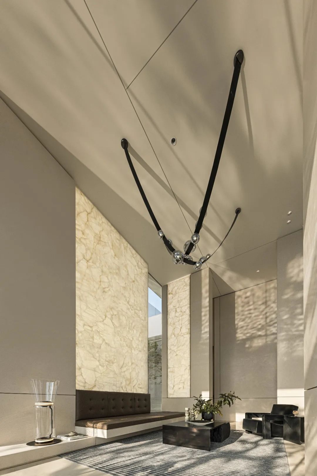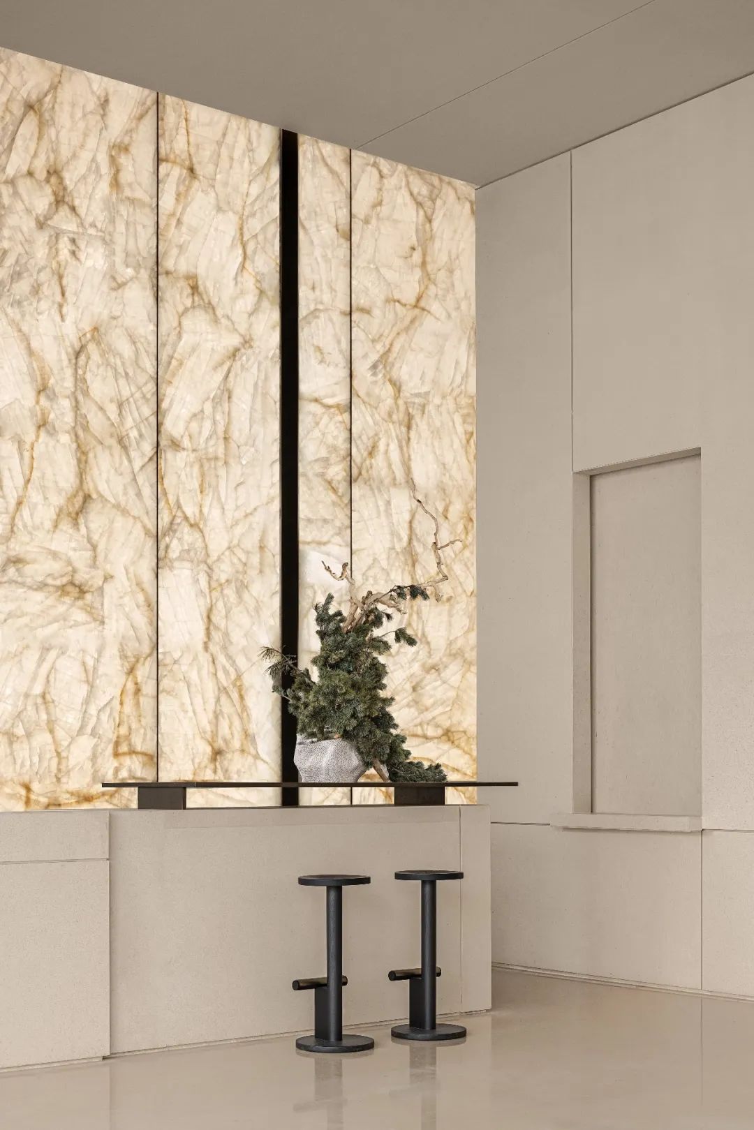 水吧是由擁有潤澤質(zhì)感的透光玉石進(jìn)行構(gòu)築的高敞空間。關(guān)於玉石,山給予它軀體,水給予它形態(tài),是山水的另一面演繹,也是極致的鋼韌與極致的柔軟相遇而孕育的產(chǎn)物。落進(jìn)現(xiàn)代都市的空間中,光輝給予了它一份獨(dú)屬於現(xiàn)代的璀璨。