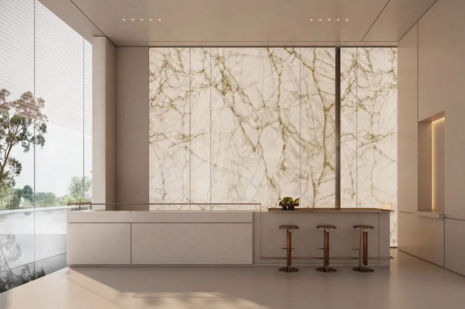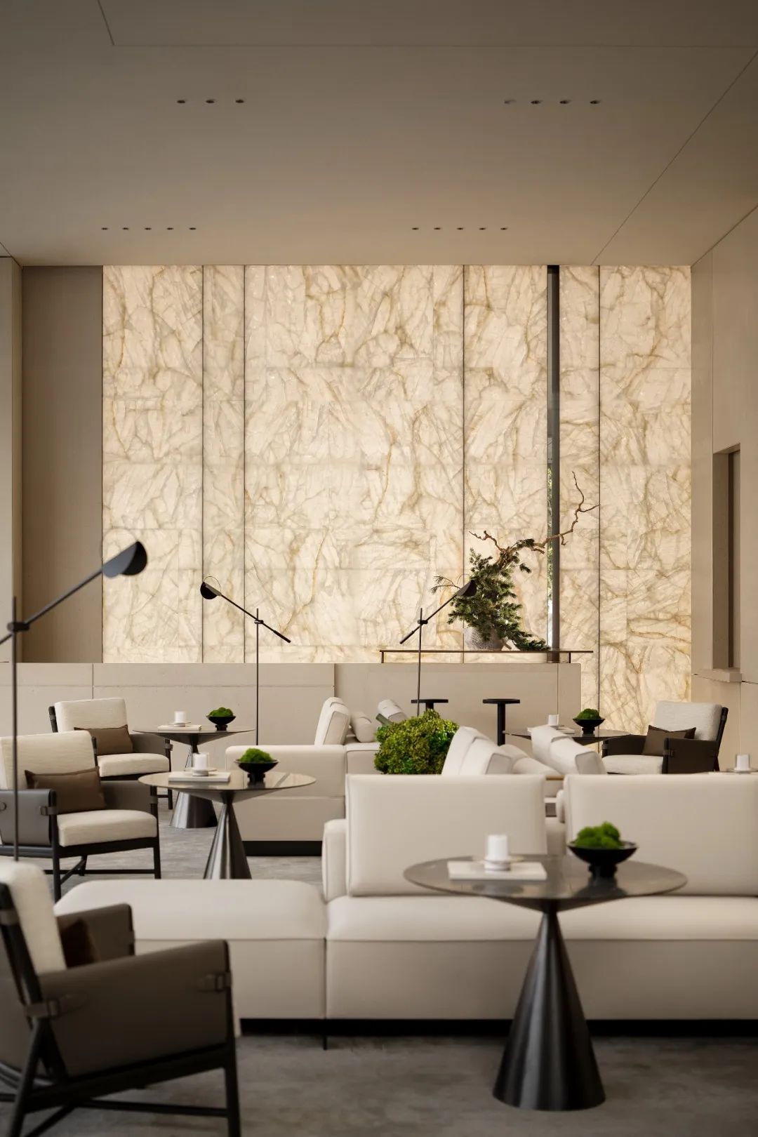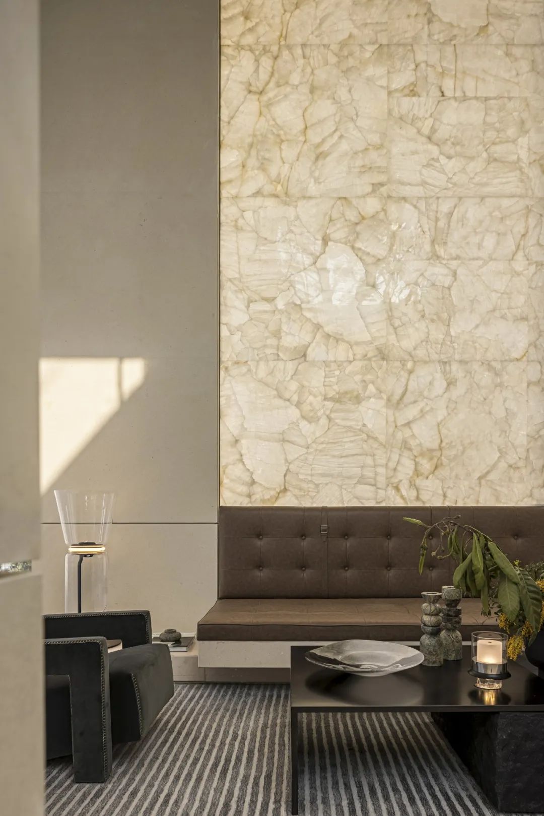 主要材料|葡萄牙米黃石材、百裏香石材、南極冰玉、洞石、橡木木飾面