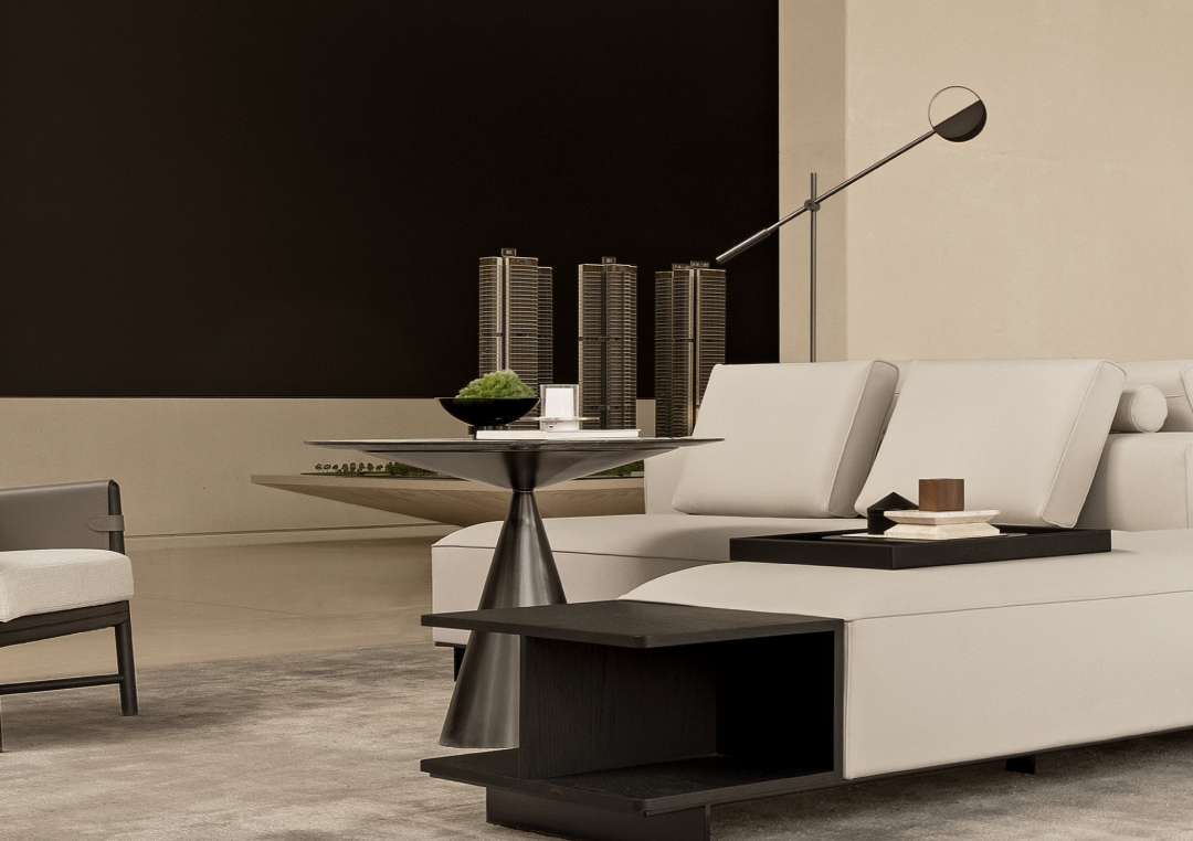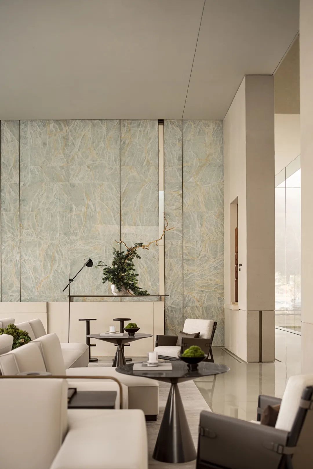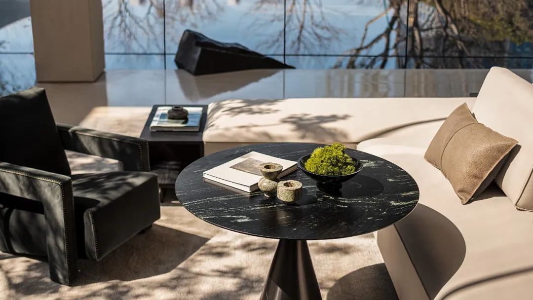 洽談區(qū)的布藝沙發(fā)選用來自意大利輕奢品牌VALENTINI的產(chǎn)品,祛除繁瑣的配飾與構(gòu)造,而是使用素雅的配色與基礎(chǔ)的形狀營建簡單自然的氣氛,配合具有自然紋理的淡雅石面雅緻天趣渾然而生。